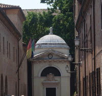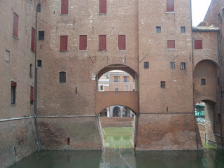 The town was once a Duchy of the Este family who built the university in 1391, which could boast Copernicus as one of its students in the early 1500s. We walked through the archways of the ancient Estense Castle which has a drawbridge as well as the only moat still filled with water in Europe! As we strolled across the drawbridge, we were told to glance through the arch to our left. The guide pointed out a particular window in the apartments across the town street – this evidently was where the infamous Lucrezia Borgia once stayed. She is buried in the convent of Corpus Domini.