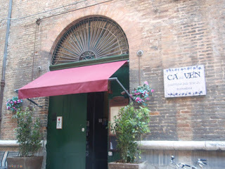 Since we were out for the day, some of us had lunch together in the recommended restaurant, Ca’Ven, a very good choice. I wondered at the cavern-like interior and art on the walls and discovered it used to be a type of church building at one time. While the others had the local flat Panini type bread with a filling of their choice, we opted for the grilled chicken and vegetables and roasted wedged potatoes – a much tastier meal with its oils and herbs. We shared the large plate of vegetables with a couple of the Americans at our long table so it was good fun all round.