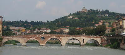 Although some of its Roman monuments had been well preserved, an earthquake in 1117 destroyed many of them which led to a surge of Romanesque buildings, and a walk through the town revealed its elegance and history. Our transport deposited us beside the River Adige with its stunning views towards the hills and to the side, a partial view of the ancient Roman theatre dating from 1AD. After walking across the Roman Bridge, we spent the next couple of hours strolling through Verona with our lovely local guide.