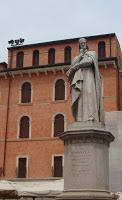 As befits this ancient walled university city, Padua produced the first woman graduate in the world, Elena Lucrezia Corner Piscopia, a Venetian who was finally granted a degree in Philosophy from the University of Padua in 1678. The town is also a centre of pilgrimage to the magnificent Basilica of St Anthony, dating from the 1200s and housing the tomb and several relics of the saint. It is still a revered place and we were unable to take any photos inside but we were allowed to copy pilgrims from all over the world and touch the tomb if we so wished. The statues and crucifix on the main altar are by Donatello, as is the horse and rider in the square in front of the church.