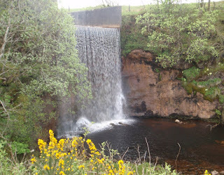 Loch Thom is the local reservoir and further on, at the famous old Cut which carried the water from the reservoir at one time, there's a great nature trail which starts off with a lovely level stroll along a path, then gradually begins to slope down until you're level with the meandering burn way down in the depths. If you continue on, you can cross the little bridge and gradually climb up the endless stairs on the other side It feels like another world, fairly near a big town, yet right out in the countryside. One of the scenes in The Highland Lass takes place out here! The gorse was fantastic, with its splashes of yellow everywhere and the waterfall is at the beginning of the trail.