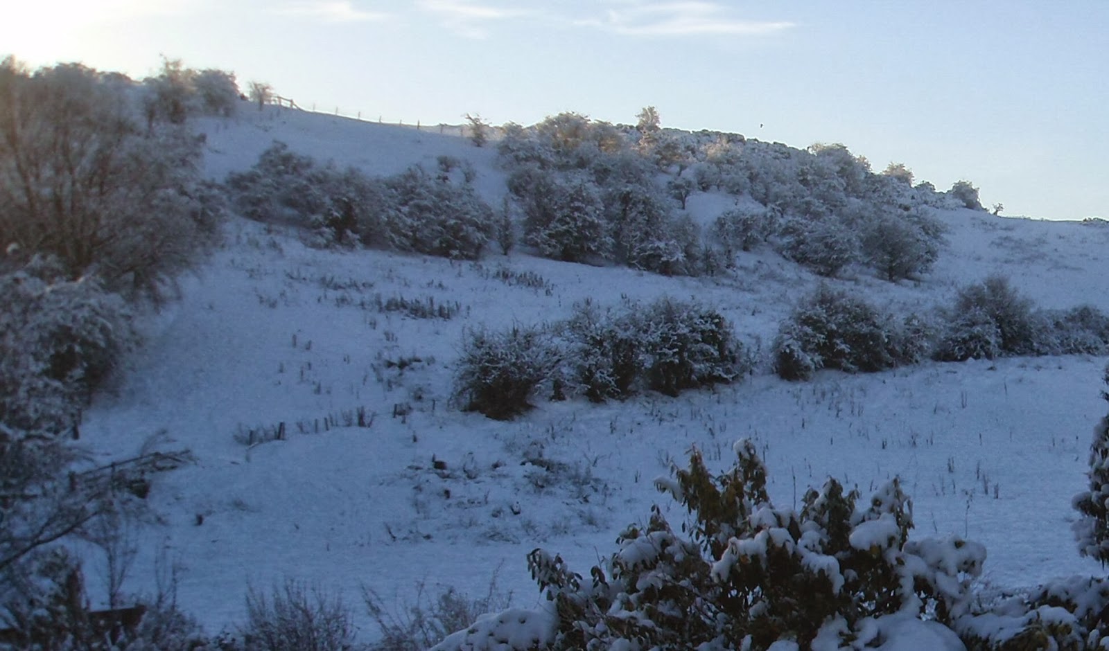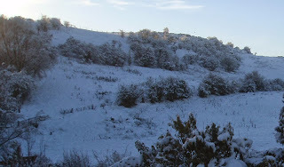 The above photo is one of the views from my home and I love when the hills are covered in snow on dark winter mornings.