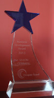 While I'm talking travel, I must mention my dear husband, Simon, who has been a professional travel agent for more years than he wants to remember and now works with Designer Travel. A few weeks ago, he was at his company's conference in Teneriffe and he came home with this lovely award for Business Development! I think he very much deserves the recognition, although he was stunned. It's clear glass so it was difficult to get a good picture of it.