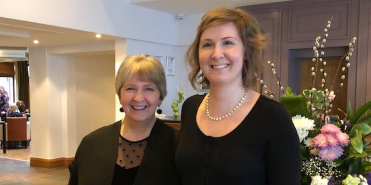 With my writer daughter!On the Saturday after the gala dinner, we had the presentation of all the competition awards. After that, we listened to an inspiring speaker (crime writer Alex Gray) whose serious writing career had begun at the SAW many years ago. The highlight of the evening was a fabulously funny drama: Carry on Sleuthing (an hour long), performed by four amazing writers who took the various parts, complete with accents and silly costumes.