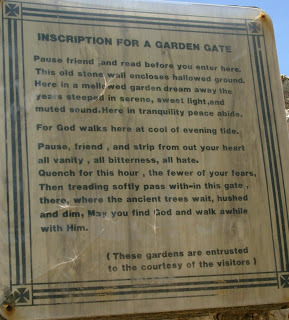I'm beginning with the Caribbean island of Aruba, in the Lesser Antilles, partly because this notice I snapped at the entrance of a little garden came to my attention this morning and I love the sentiments. Hope you can read it as it was rather old and faded.