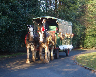 We went for a lovely walk in the grounds of my favourite Georgian country house yesterday and imagine my delight when we discovered two of the beautiful Clydesdale horses were decked out to pull a little Christmas trolley along for children and their parents. I'm a sucker for anything like this but restrained myself to taking a few photos!
