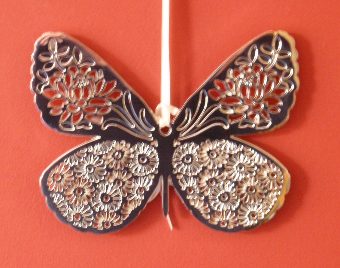 Well my dear friend, Catriona, surpassed herself the other day when she handed me a gift to celebrate publication of my first novel, Dangerous Deceit. She has always been hugely supportive and that was more than enough. Besides which, her husband bought my e-book for her right away so she could read it on her computer! So I opened the beautiful white box in mounting curiosity to find, nestled amongst white tissue paper, a heavy filligree hanging butterfly!