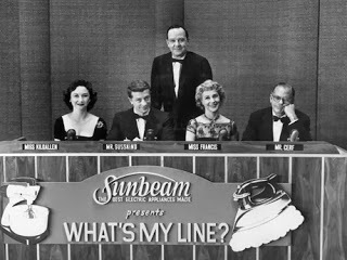 Lately the GSN has been showing old black-and-white episodes of I’VE GOT A SECRET and WHAT’S MY LINE? in the middle of the night. (I think contractually they have to play them for so many days a year.) These were old musty game shows from the ‘50s and ‘60s. By today’s standard they are positively archaic. A panel of four personalities must guess the contestants’ job or secret. That's it. There was zero production value and if a contestant stumped the panel they won the whopping sum of $50. The shows were aired live (for the east coast anyway). Today they're great fun to watch.