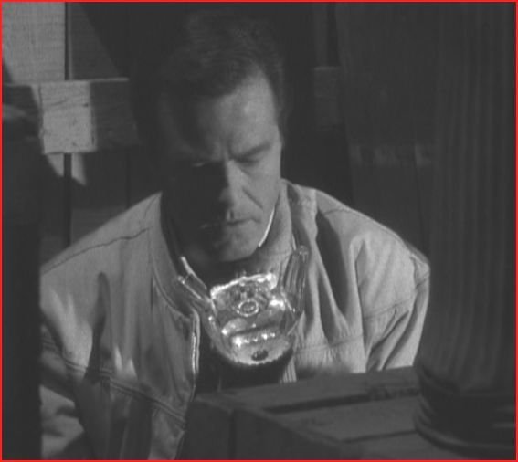 Trent getting handy advice.1. Demon with A Glass Hand - Trent (Robert Culp) is a man “born ten days ago” who has no previous memory and is being pursued throughout a huge deserted office building by alien beings that want to kill him. His actions are guided solely by his hand, which is made of glass with a tiny computer inside. The hand has two digits—the thumb and pinky—and talks to Trent. This fascinating episode penned by Harlan Ellison showcased The Outer Limits at its best: a brilliant concept, an offbeat setting, and a strong central performance.for the rest go here: