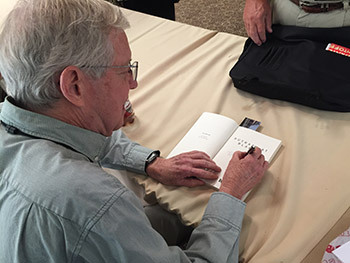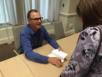 Bill Crider signing his book OUTRAGE AT BLANCO