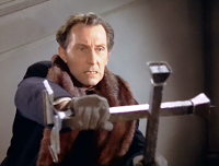 Van Helsing's makeshift crucifix.3. Horror of Dracula (aka Dracula) (1958). The one that started it all is an effective adaptation of Bram Stoker's novel. The opening scenes with Jonathan Harker at Castle Dracula and the climatic confrontation between Dracula and Van Helsing are marvelous. My only complaint is that the pacing drags in the middle when the action shifts to England. Still, it set the standard not only for the rest of the Dracula series, but for all the Hammer vampire films that followed it. James Bernard's exceptional score would become very familiar to Hammer fans.