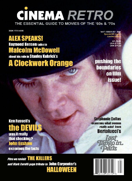 Cinema Retro issue #21 is now shipping in worldwide. All subscribers should have the issue in their hands any day. It's our most provocative issue ever, covering some of the most ground-breaking, censor-shattering films in history. Among the highlights: