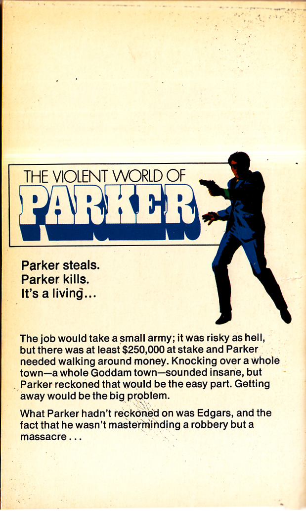 “When a fresh-faced guy in a Chevy offered him a lift, Parker told him to go to hell. The guy said, ‘Screw you, buddy,’ yanked his Chevy back into the stream of traffic, and roared on down the tollbooths. Parker spat in the right-hand lane, lit hislast cigarette, and walked across the George Washington Bridge.”