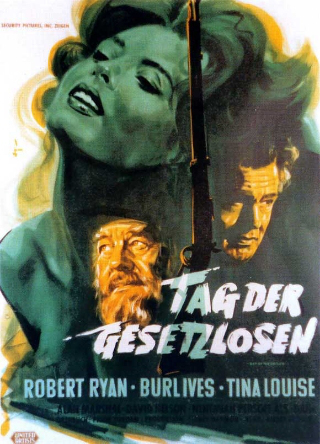 For what;s it's worth this is one of my top ten westerns-nothing else quite like itRIDE THEHIGH COUNTRY:I like westerns, I like movies which could be described as chamber pieces, and I like snowy backdrops. Day of the Outlaw (1959), directed by Andre de Toth, checks all these boxes. It’s one of those films genre fans will enthuse about yet remains criminally underrated by others. It’s also a film where there’s not a huge amount of action; there is, however, a kind of relentless tension and a whole lot going on just below the surface. In short, the film is a sleeper, a tight and atmospheric classic just waiting to be discovered.I think one of the most enjoyable aspects of watching movies is to be found in the deceptively simple story, those tales which initially appear to be straightforward or predictable yet gradually develop into something much more complex and satisfying. Day of the Outlaw is a fine example of a work where layers of depth emerge bit by bit and draw you in before you’ve realized it. It opens in a wintry Wyoming town as two men, Blaise Starrett (Robert Ryan) and his foreman Dan (Nehemiah Persoff), ride in and bemoan the stringing of barbed wire and the consequent threat to the open range. Starrett’s blood is up and he vows a showdown with the homesteader responsible. The scene therefore is set for the kind of range war drama that’s been seen countless times. But this is a mere introduction, an opportunity to draw attention to the implacable and tough character of the lead. When it then becomes apparent that Starrett is in love with and covets the beautiful wife (Tine Louise) of his chief rival, the plot moves to another level. And still we’re only dancing around the periphery, for what really matters here is the journey – both literal and figurative – which Starrett (among others) will be forced to embark upon. In a deft piece of filmmaking sleight of hand the entire emphasis is moved away from that which the build-up has led us to expect. Just as we’re about to witness the duel between Starrett and his foe a bunch of newcomers arrive and take us off in a completely different direction. Jack Bruhn (Burl Ives) is a Quantrill-like figure, a soldier with a tarnished reputation now reduced to leading a band of amoral cutthroats. Bruhn and his men are loaded down with stolen gold, but he’s got a bullet lodged inside him and the army hot on his heels. The enforced stopover in the snowbound town represents a trial of sorts for the bewildered and helpless residents, but it also holds out a kind of hope for two lost souls – Starrett and Bruhn. Both men find themselves in opposition and through that also find a way to regain a little of the humanity that years of hard living have almost stripped away.