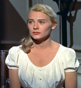 Hope Lange as Selena.The standouts in the Peyton Place cast are young stars Diane Varsi and Hope Lange. Varsi's poignant narration provides the nostalgic transitions as the plot progresses from 1941 into the World War II years. She also effectively captures Allison's passion for life and later her disillusionment when she learns the truth about her deceased father. Lange has a smaller role, but evolves nicely from an innocent young woman to one harboring dark secrets that weigh heavily.