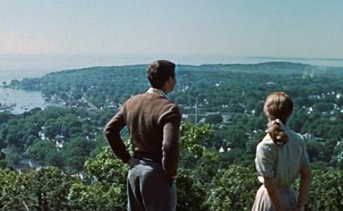 Allison shows her "secret place" to Norman.Of course, the unsung star in Peyton Place is the town itself. Scenic and quaint from the outside, its secrets have attracted the interests of millions of readers and viewers. Carol Lynley played Allison in the 1961 sequel Return to Peyton Place, also based on a Grace Metalious novel. A popular prime-time TVs series followed in 1964 (click here to read our review of it). There was also a short-lived 1972-74 daytime drama and two made-for-TV movies: Murder in Peyton Place (1977) and Peyton Place: The Next Generation (1985).Why all the interest in this small New England town? Perhaps, Constance sums it up best when talking to Mike Rossi in the first film: "In Peyton Place, two people talking is a conspiracy. A meeting is an assignation. And getting to know one another is a scandal."