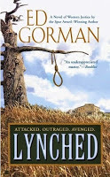 Ed Gorman wrote no fewer than 10 western novels for Berkley between 1999 and 2006. The earlier titles tended to be branded with a single word—Lawless, Vendetta, Relentless,Lynched—and like all of Mr Gorman’s westerns, each is as much a mystery as a western. I recently read his novel Lynched, which was originally published by Berkley in 2003 and recently released as an ebook by Rough Edges Press. Ben Tully is a quiet working class marshal in a small, unnamed, frontier town. The new century is approaching, and the world is changing. The business of law is moving from the end of a gun to a more scientific approach. Fingerprints are a big deal in the trade magazines (even if the courts don’t approve), as is reading a crime scene for evidence. But the future is far away when Tully finds his town dark and quiet, his office a shambles—the night deputy beaten and unconscious—and a man swaying, dead, at the end of a rope behind the jail.