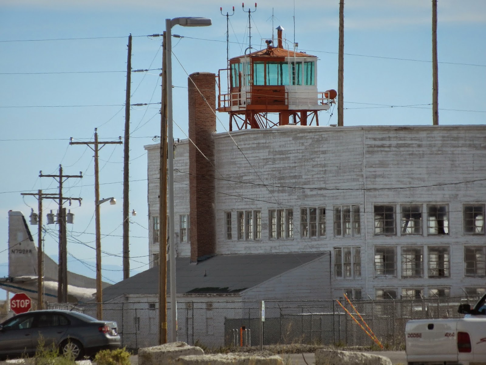 The cockpit is barren. Aluminum shine with little else. Two small windows stare at the desolate desert. The original stick—wheel, I think, in this case—is replaced with something like a steering wheel from a bus. If it ever flew it was long ago. In the film the old airbase fronted for “Turner Field”; the desert location where the convict crew landed and most of the film’s action happened. If you look around you can see it. The unpainted clapboard buildings. The rotting airplane hangars, a vintage control tower—now restored—and a swimming pool, its surface covered with peeling blue paint where Steve Buscemi likely took tea with an unsuspecting girl and her dolls.
