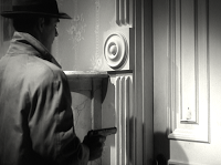 Director Frank Tuttle and cinematographer John Seitz team up on a number of exciting visuals. The chase through the train yard and the drainage pipes may be the film's highlight, but there are clever bits throughout. My favorite may be a scene where the hotel maid goes to use a pay phone in a police-filled lobby, unaware that Raven is hiding there. He presses his gun against her side as she pretends to talk on the phone. Her phone dialogue consists of answers to his questions. It's a brilliant merger of smart dialogue and murky lighting.