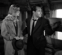 Alan Ladd became a star as anti-hero Raven, a contract killer who is double-crossed by his client. The film's opening scene tells us all we need to know about the quiet Raven. He takes in a stray kitten and feeds it milk. But when the cleaning lady (dressed like a showgirl) shoos away the cat, Raven grabs her, rips her dress, and slaps her backhanded across the face. Here is a man that is ruthless, but with a morsel of humanity buried deep inside. (Later, Raven tries to rationalize his affection for cats by claiming that they bring luck.)