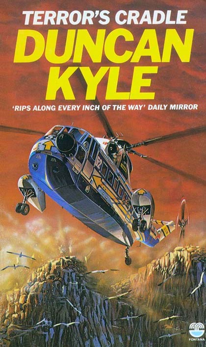 The genre also cultivated other writers who, while not quite consistent enough to break into the top level, wrote some pretty damn good novels. One such writer is Duncan Kyle. Mr Kyle, which is a pseudonym for one John Franklin Broxholme, published 15 novels between 1970 and 1993. He was a bestseller in the United Kingdom, but his work never quite paid out in the United States. I recently read Mr Broxholme’s fifth Kyle novel, Terror’s Cradle, published by William Collins in 1975.