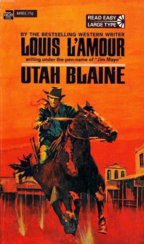Posted: 28 Mar 2014 04:06 PM PDTUtah Blaine is the second of three Louis L’Amour novels published by Ace. It was originally published as by Jim Mayo and made its debut as one half of an Ace Double (D-48) in 1954. The artwork of the original paperback isn’t bad, but getting a copy could set your retirement back.
