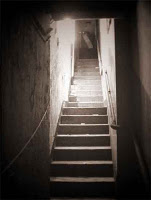 He carried the truck under his arm, it was heavy and nearly half the length of his body. It was the only truck he had that could actually carry all of his army men standing up. He stood in front of the heavy door that blocked the musky basement from the rest of the house. He pushed it open and swung his hand around to the left of the door, groping for the light switch. He pungent smell of wet stone wafted up to meet him. The bit of day light that hit the stone stairs showed the cracking foundation and webs where spiders had taken up residence. He flicked the switch, bathing the stairway in a soft yellow glow. The light gave just enough illumination to allow a peak down the stairs and into the suffocating darkness.