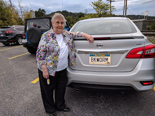 Dear Anna Smucker came to the reading, and Steve and Beth Goff. He's the former WV Writers president. And for the whole day, instigator and informal publicist, money collector for my sales (she brought cash for change) and doyenne of West Virginia literature, the inimitable Phyllis Moore was there. Her license is "BKWORM," and she knows everything about writers and books in West Virginia.