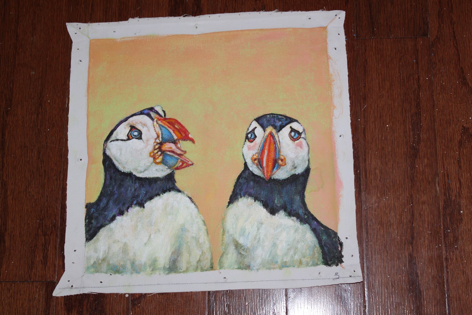 Finn & Geo pictures are all original artwork, acrylic on canvas, done by Kit Teasdel. They are colorful and fun.