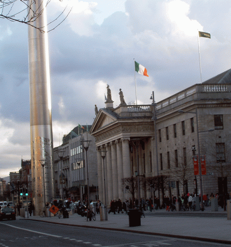 O’Connell Street is undoubtedly the heart of Dublin. The main fashionable shops are here, some important services (like the General Post Office), cinemas, hotels, tourist spots. Today, it is a beautiful, modern and elegant boulevard, but it hasn’t always been like this. The first time I came to Dublin to study English, my English teacher told us students that O’Connell Street was coming back to life then after being quite a dangerous and degraded spot through the 1970s and 1980s.