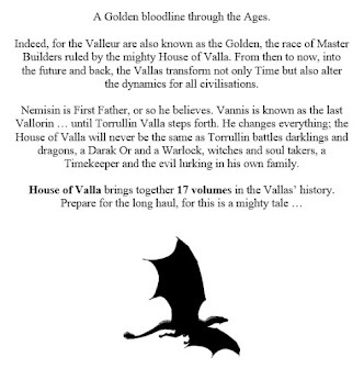 Earlier this year I put together the BIG BOOK, one I'd been meaning to do for a while. Yes, HOUSE OF VALLA. This edition of my lore encompasses the 17 books that form part of the grand tale (Lore of Arcana, Lore of Reaume, Lore of Sanctum & Ancient Terra), but rather than simply put the various editions together and format for one book (which, btw, was a mammoth task!), I removed series mentions and gave each book a title suited to the massive tome.