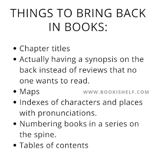Hmm, when I started out with my Lore I was advised to streamline as much as possible. To that end, I removed character lists and chapter titles, although I do still have maps and Contents lists the parts rather than every chapter. Perhaps time for a rethink?
