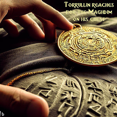 In the first 4 books (Lore of Arcana), we hear about three devices/artefacts that drive the story. So far I've shown you via AI art prompts how I envision the Ancient Oracles and the Maghdim Medaillon.