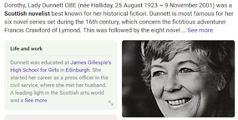 In a different vein today - this post is about Dorothy Dunnett, a Scottish author who blew my younger mind into the stratosphere with her writing in the 20th Century (man, I sound old!). I found this recently, and it reminded me of how much I loved her work (and I was saddened to realise she isn't with us anymore):