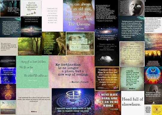 Update: You will recall that we posted Justine's 500 words per day here on Writing World and created a dedicated page to keep track, and each post was accompanied by an inspirational or insightful image/text. As the page will be removed after this update, I thought I'd share with you a collage of some of those images. The actual posts will remain on this blog, though :)