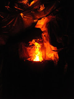 Carefully we wind through small gatherings around their fires. Some ignore us,; most call greeting of some kind. By the time we near the high fire, our progress to it is obvious to those gathered there.