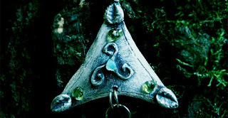 A silvery-blue curved triangle, a leaf at each point and inside, a triple curl design; it shimmers before my mind’s eyes as a mark of benevolence. A triskelion.