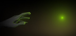 Horin’s arm glows green and then he points.