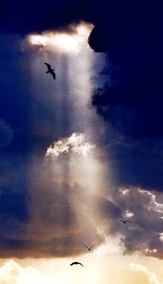 Light suddenly surrounds me. I am still looking up and I see the dark clouds part as if commanded. A circle of blue forms overhead and sunlight pours through.