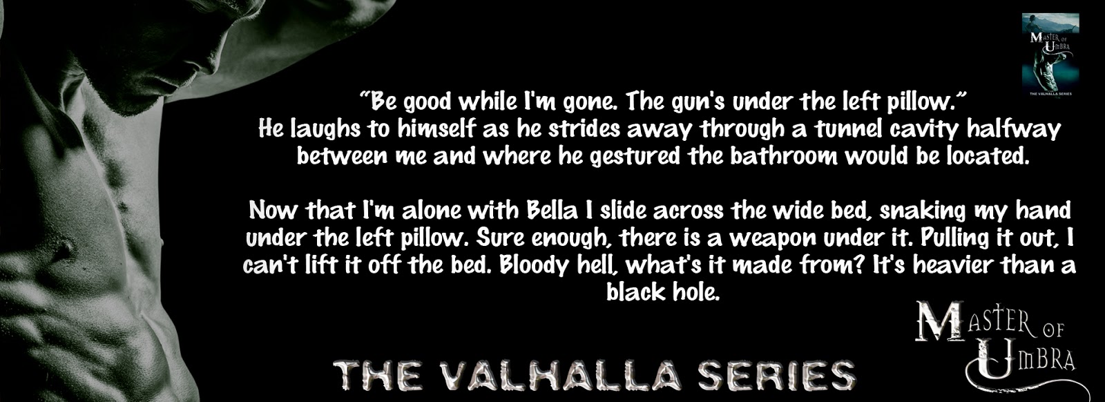 “What do you want?” he snaps, in that impatient drawl.“Er... I can't get confrontational in the dark,” I mumble, losing courage.“I bet you're plenty confrontational in the dark.” Gripping my arm in the 'master is not pleased' grind, he marches me deeper into the darkness, muttering, “Dressed like that only reinforces the image.”“What's wrong with the way I'm dressed?” I argue, wishing he'd slow down already.He laughs, and it's cold, “Sweetie, it looks like you're either going to put me over your knee, or beg me to put you over mine.”“Oh go get knotted–”“Did you leave any beer in the vat when you finished sucking it dry? Ulfhednar head is white and frothy, just the way you like it.”“I did not–”“You're more baked than clay and you're going to be just as dehydrated come sunup. What the hell were you thinking?” he chastises, hauling me into a grotto ready to raise the dead. Candles and steam haunt the room like old lovers getting nostalgic.“What the hell was I thinking?” Now you've done it mister twat. “I was thinking you require trepanning so you can deflate your fucking ego.”He turns to scowl down at me, his chest embroidered with white scars which map bridges over his extreme musculature. I'm trying very hard not to gawk, but bleedin' heck, he looks like an action man who grew up on a uranium farm, except of course for the tortured gaze he pegs me with when he folds his arms and bursts veins out in wild rivulets. They ridge in the flickering candlelight, shadowing his bulk with a net of strength.What was he doing here exactly, in just his baggies?