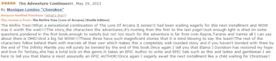Hello! Lore of Arcana's first 2 books both received an 'exceptional' from a reader who bought and read AND reviewed both! Thank you to Florence!