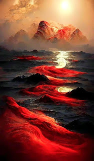 As unmistakeable as a volcano preparingto erupt had been moments ago, thus it was with the actual eruption. They heardand felt a distant roaring, and the orange heavens in the west became afireball, great and hot. The land shook in terror.