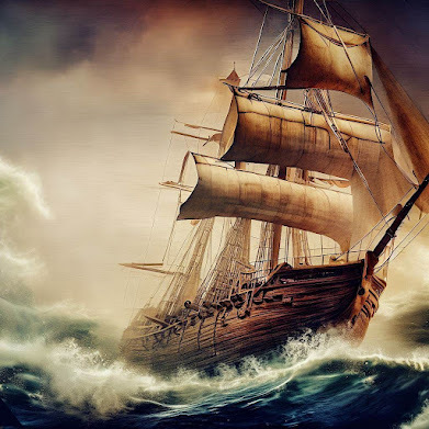 Hepaused there in his thoughts, and in his movements. Silence. There was onlysilence. No sound of crashing waves. Not even a whisper of the gale that hadnearly drowned him in sea spray. Not a creak or a flap of wood and sail. Andthe ship was motionless.