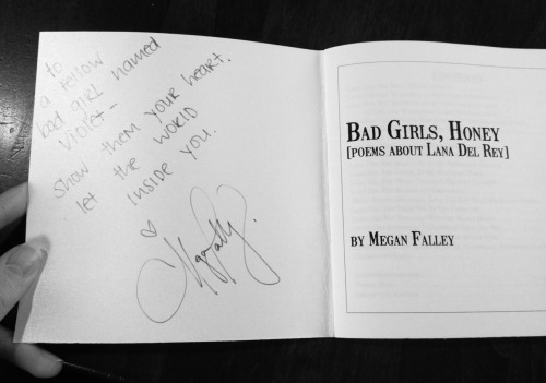 for a copy of megan falley’s latest book, “bad girls, honey [poems about lana del rey]” - be one of the first 50 people to send $11 to meganfalley@gmail.com via paypal & get that bad girl in your mailbox right away.