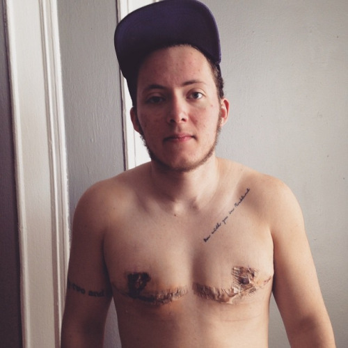 8 days post-op and finally got to see the results. It’s not pretty yet, but it’s real. It was unnerving to get queasy taking off the bandages and to be grossed out by the blood/stitches. I was a little scared to be scared of my body, but after showering and getting to relax a few minutes out of the compression vest, it hit me that it’s over/finally beginning. And it’s pretty fucking awesome. #ftm #trans #transguy #transman #topsurgery #ftmtopsurgery #queer