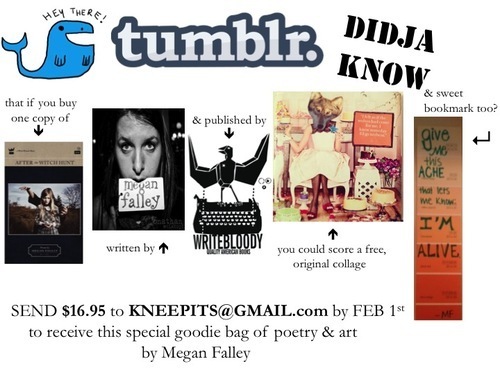 So I am making original collages and bookmarks for anyone who orders a copy of my book from me before February 1st! The bookmarks are swell too but a lady has to keep SOME secrets. PayPal $16.95 (cost of book + s&h) to kneepits@gmail.com for your signed copy and goodie bag of creative brain-spills. I adore you!
