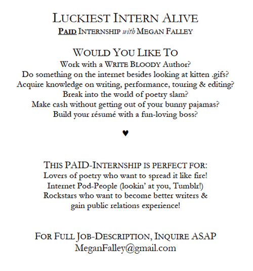 Megan Falley: Oh goodness. I don’t think, at least for me, that self-confidence in writing is a constant thing. There are weeks where I feel great about the work I am putting forth, and weeks I think that I am a sham who just had decent luck with former poems and I’ll never write a good one again. Self-doubt can be crippling, but it can also keep me grounded. I know that not everything I write is amazing—if I thought that, I wouldn’t struggle, wouldn’t push, wouldn’t stretch myself to be better than the last time. I wouldn’t edit. I don’t ever want to be 100% confident in my writing. When I am, I think I’ll start writing real, consistent crap. I don’t want to be 100% self-depricating either, because that is the antithesis of creativity. I just want to acknowledge that sometimes I hit the mark, and sometimes I don’t. It’s not about always hitting the mark, it is about always shooting. About not being afraid of your own arrow.