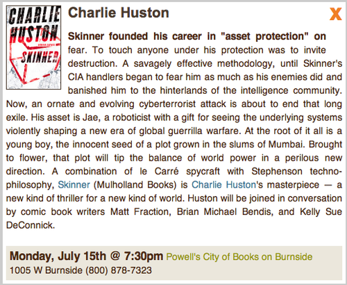 A reminder that I will be having a terrific time this evening talking with great people. And if you live in the Portland area you are invited to please join us.