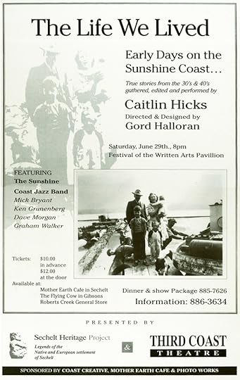 This particular story was presented live asThe Life We Lived, with Louella in the audience at The Rockwood in Sechelt. She was one of several women whose stories were told that day, true stories from women who lived in the early part of the 20th century.