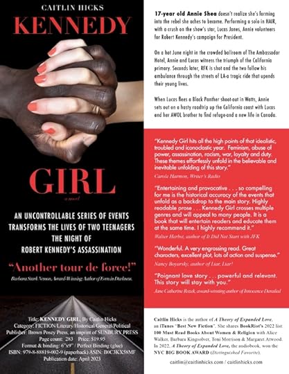 I enjoyed reliving American history of the tumultuous 60’s through the eyes and emotions of Annie Shea in Caitlin Hicks’ new novel Kennedy Girl. Annie is the compelling protagonist in Caitlin’s first best-selling novel A Theory of Expanded Love.